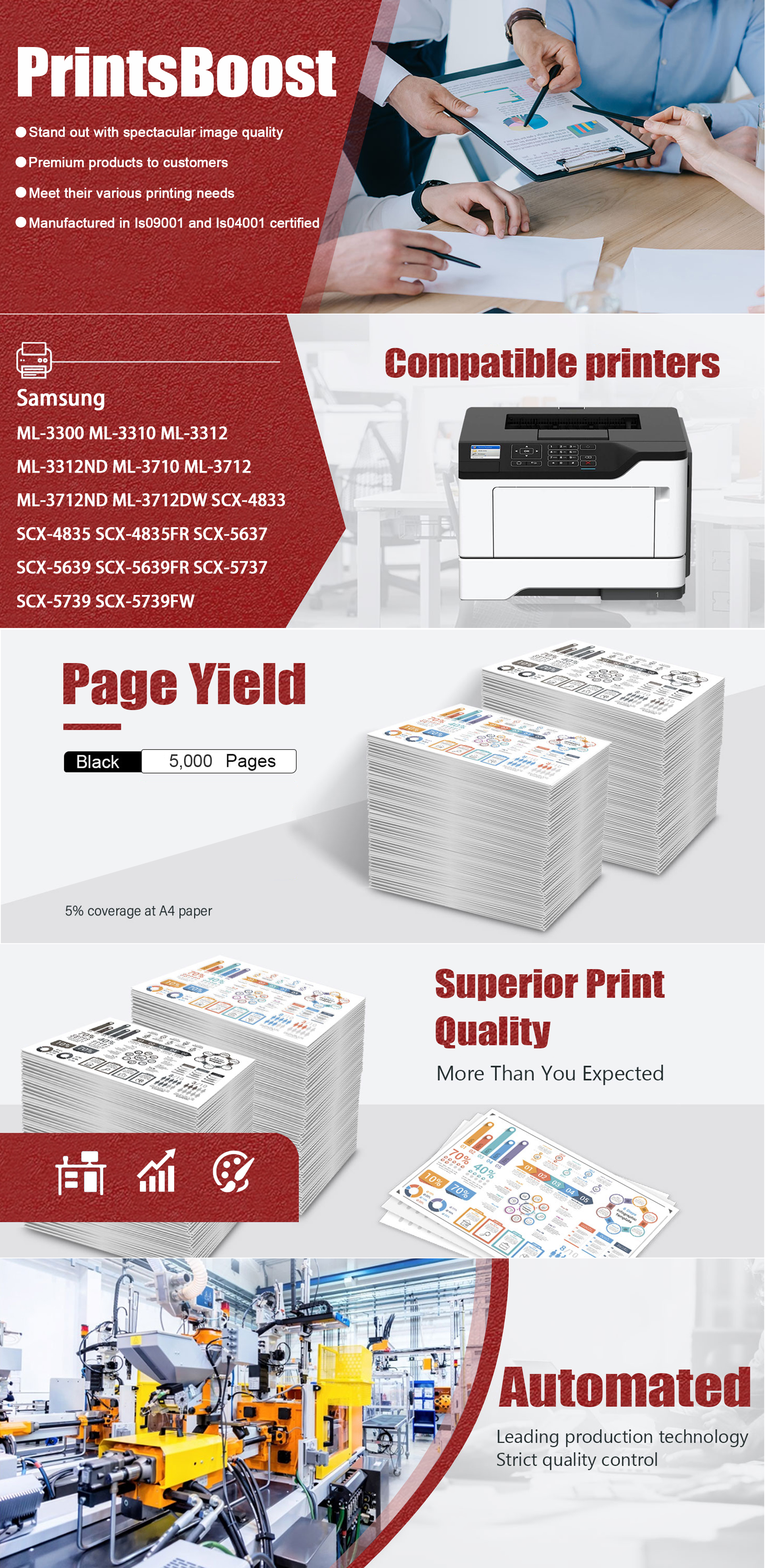 📄 Page Yield: Print up to 5,000 pages with each MLT-D205L black toner cartridge, based on 5% coverage of A4 paper.